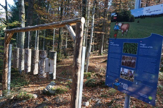 Am Ende Ihrer Wanderung auf dem Erlebnisrundweg können Sie in unmittelbarer Nähe vom Ausgangspunkt unserem neuen Mugg's Freizeitplatz noch einen Besuch abstatten. Nehmen Sie Platz auf den rustikalen Garnituren und geniesen Sie ihr Vesper oder probieren Sie die verschiedenen Spielmöglichkeiten für jung und alt aus.